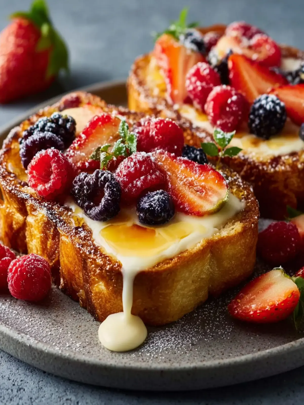 Fresh Fruits: Top your custard toast with a medley of fresh berries—strawberries, blueberries, or raspberries. The tartness of the fruit adds a refreshing contrast to the creamy custard.