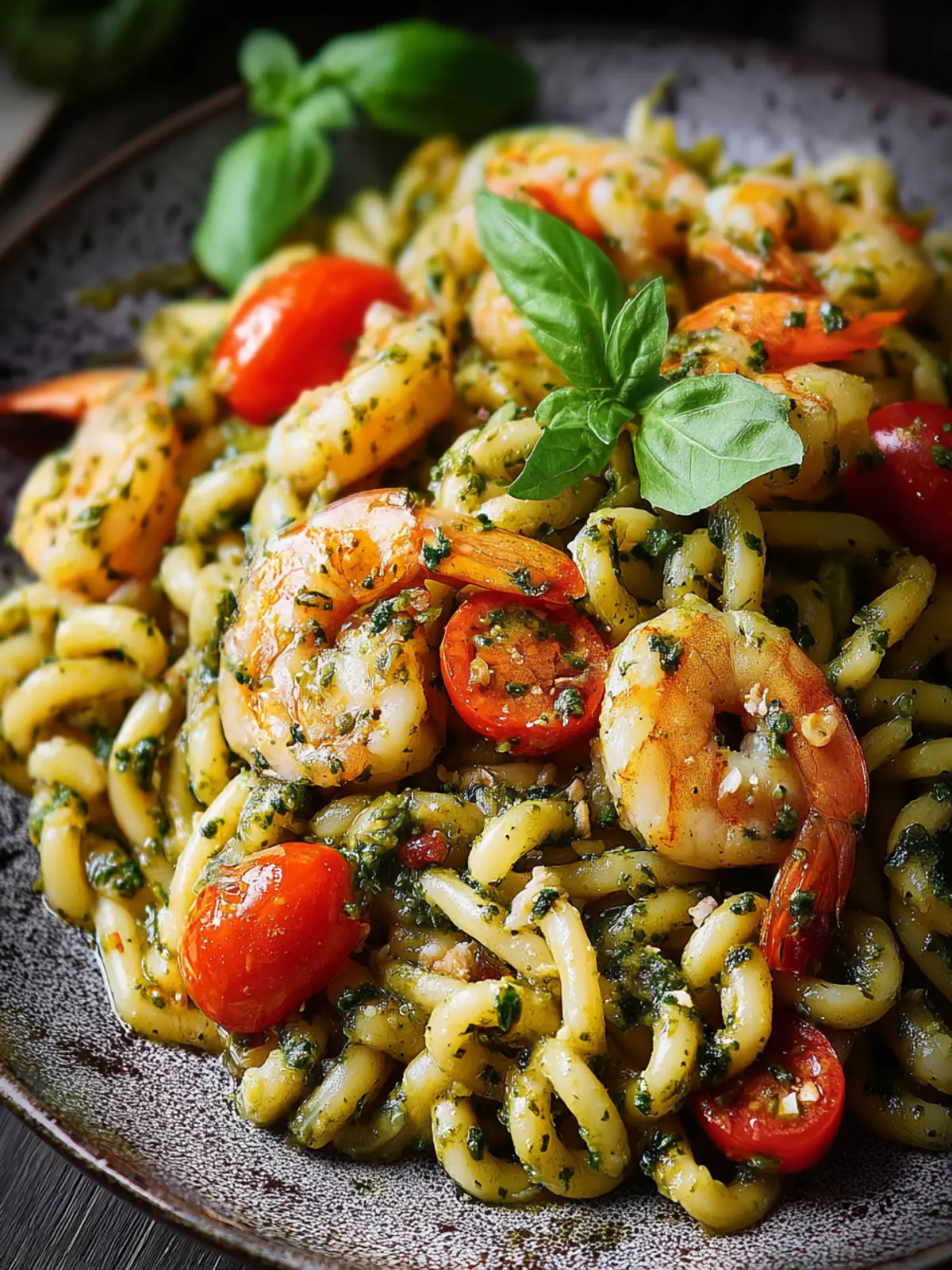 Don’t underestimate the power of presentation! Serve your delicious shrimp pesto pasta in a vibrant bowl, topped with freshly grated Parmesan and a sprinkle of pine nuts. A garnish of fresh basil leaves will not only add color but also boost freshness.