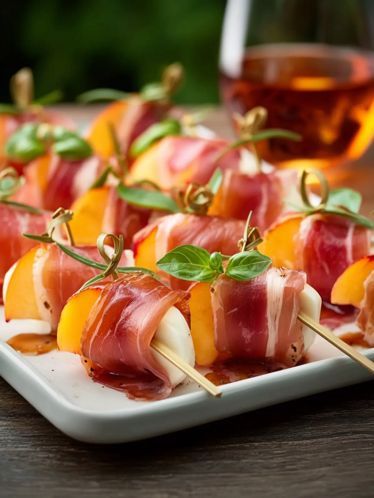 Visual Appeal: The vibrant colors of the ingredients make these skewers not just delicious but also a feast for the eyes. The golden hues of the peaches against the deep pink of the prosciutto create an inviting presentation that draws guests in.