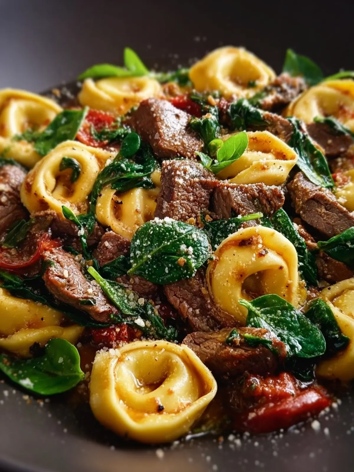 While fresh spinach is ideal, don’t hesitate to use baby spinach for a milder flavor. Resilient and quick-cooking, it adds essential nutrients to your garlic butter beef and spinach tortellini without overpowering it.