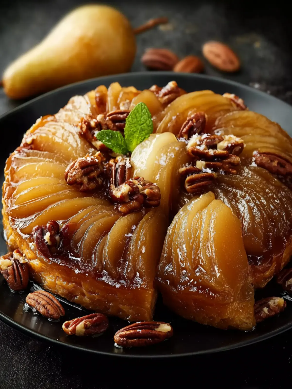 In closing, the pear maple and pecan tarte tatin is not just a dessert; it’s an experience that wraps you in warmth and nostalgia. Imagine adorning your dining table with this caramelized beauty, inviting friends and family to share in its delightful flavors. The juicy pears, rich maple syrup, and crunchy pecans come together to create a symphony of taste that’s as satisfying as it is visually stunning.